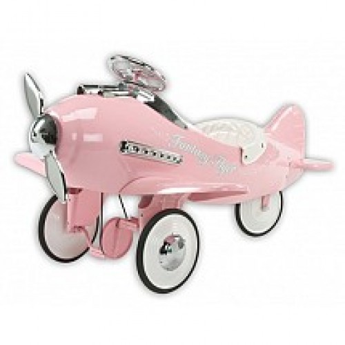 Fashioned after our nostalgic Silver Pursuit Plane, the Fantasy Flyer comes with a custom padded seat, bright pink powder coat and shiny chrome detailing. Like all our planes it has a moving spring-loaded propeller, sealed ball bearing drive, non-slip pedals and high-traction tires. It is finished in a long-lasting lead-free powder coat and adorned with original-vintage graphics. Built for the typical youngster ages 2 to 5 years old.